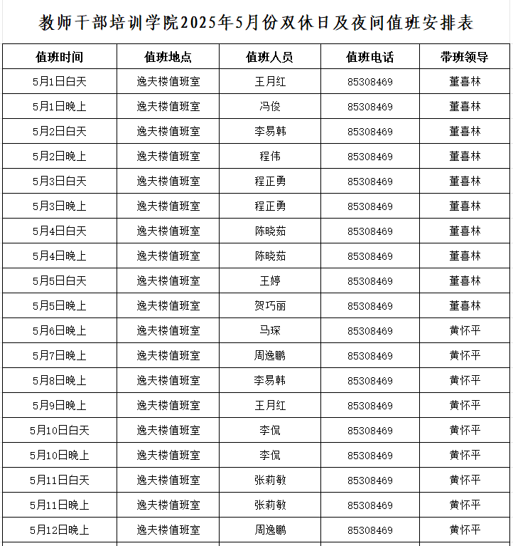 5.当值人员结束值班前需通过电话提醒下一班值班人员按时到岗并交接相关注意事项;
