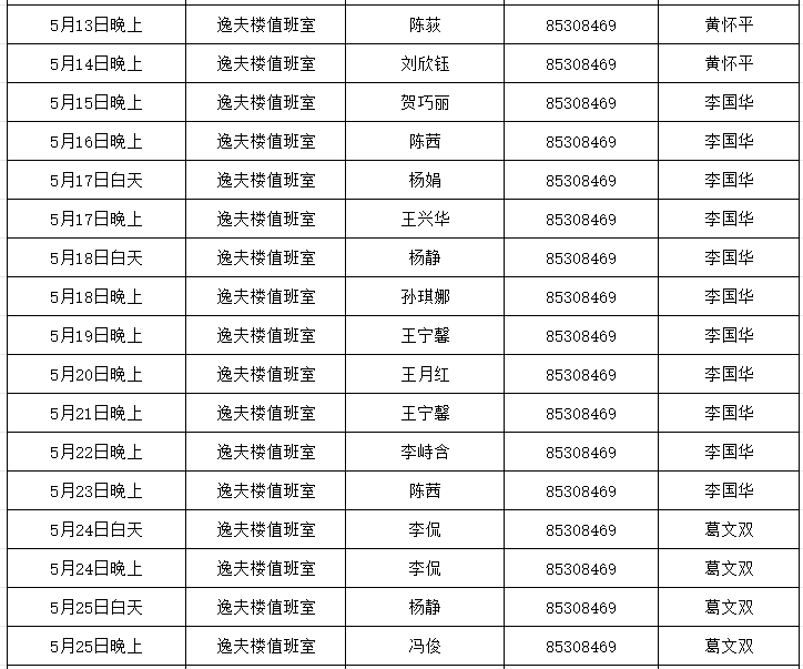 6.值班时间:上午:8:30—12:00 下午:14:30—17:30。