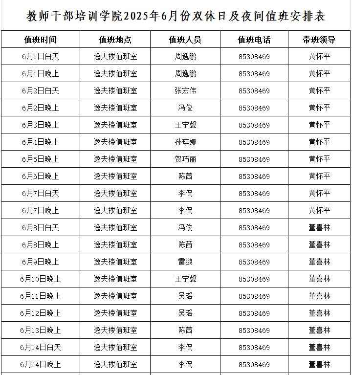 完美世界电竞 2025年6月份双休日及夜间值班安排表