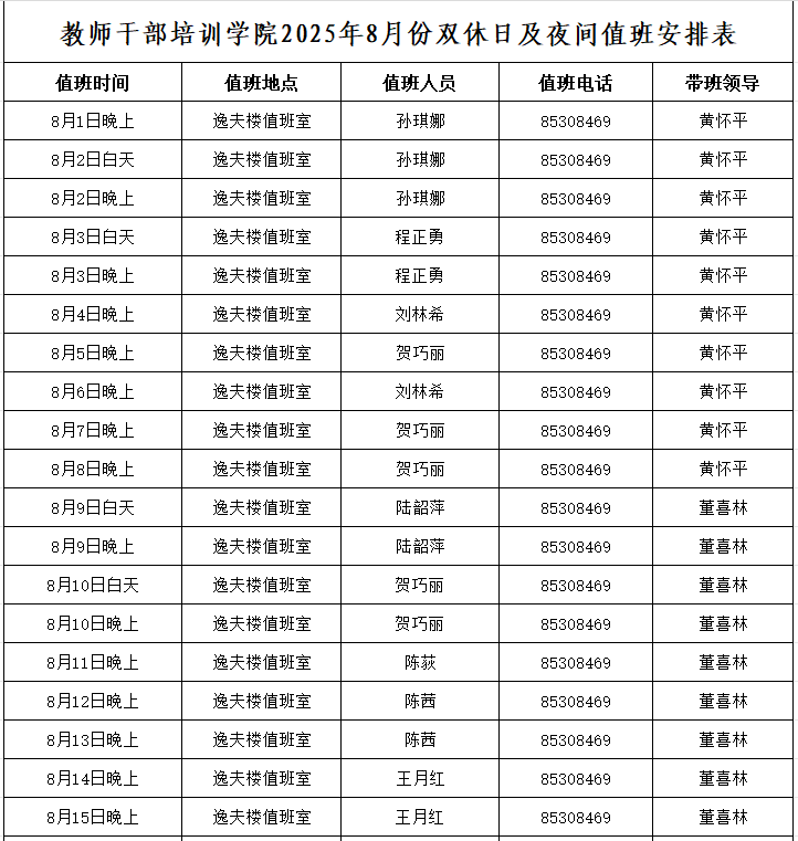 完美世界电竞 2025年8月份双休日及夜间值班安排表