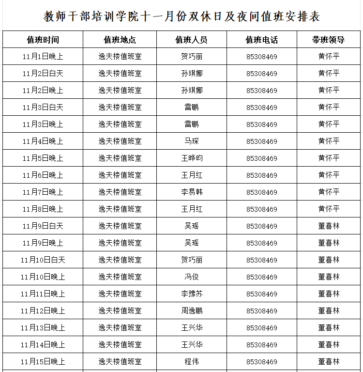4.值班时间:上午:8:30—12:00 下午:14:30—17:30 晚上:17:30—21:30。