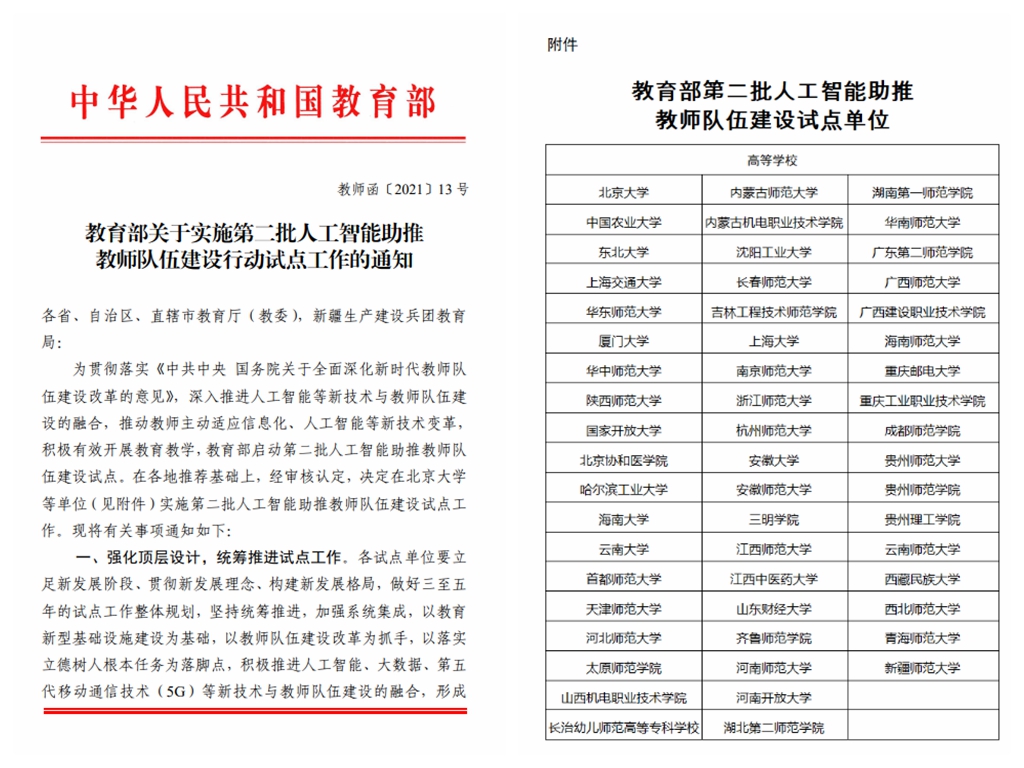 2021年9月获批成为“教育部第二批人工智能助推教师队伍建设试点高校”。为深入推动试点工作,学校成立了陕西师范大学智慧教育研究院,挂靠在完美世界电竞