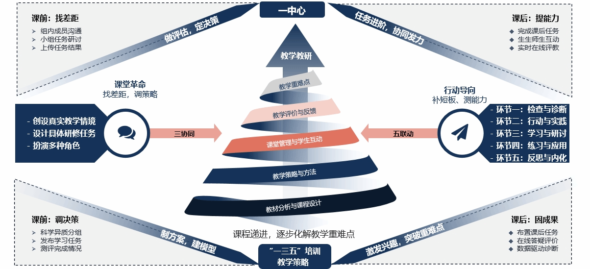 培训过程中,项目组采用了“1-3-5培训教学策略”,即围绕“1中心”能力要求,设计研修任务;实施情境-任务-角色“3协同”,激发学习兴趣;采取课堂教学环节“5联动”,规划三阶任务,解决教学难点。这种以参训教师能力提升为中心的培训方法,有效激发了教师的学习主动性和创造性,促进了教学理论与实践的紧密结合。