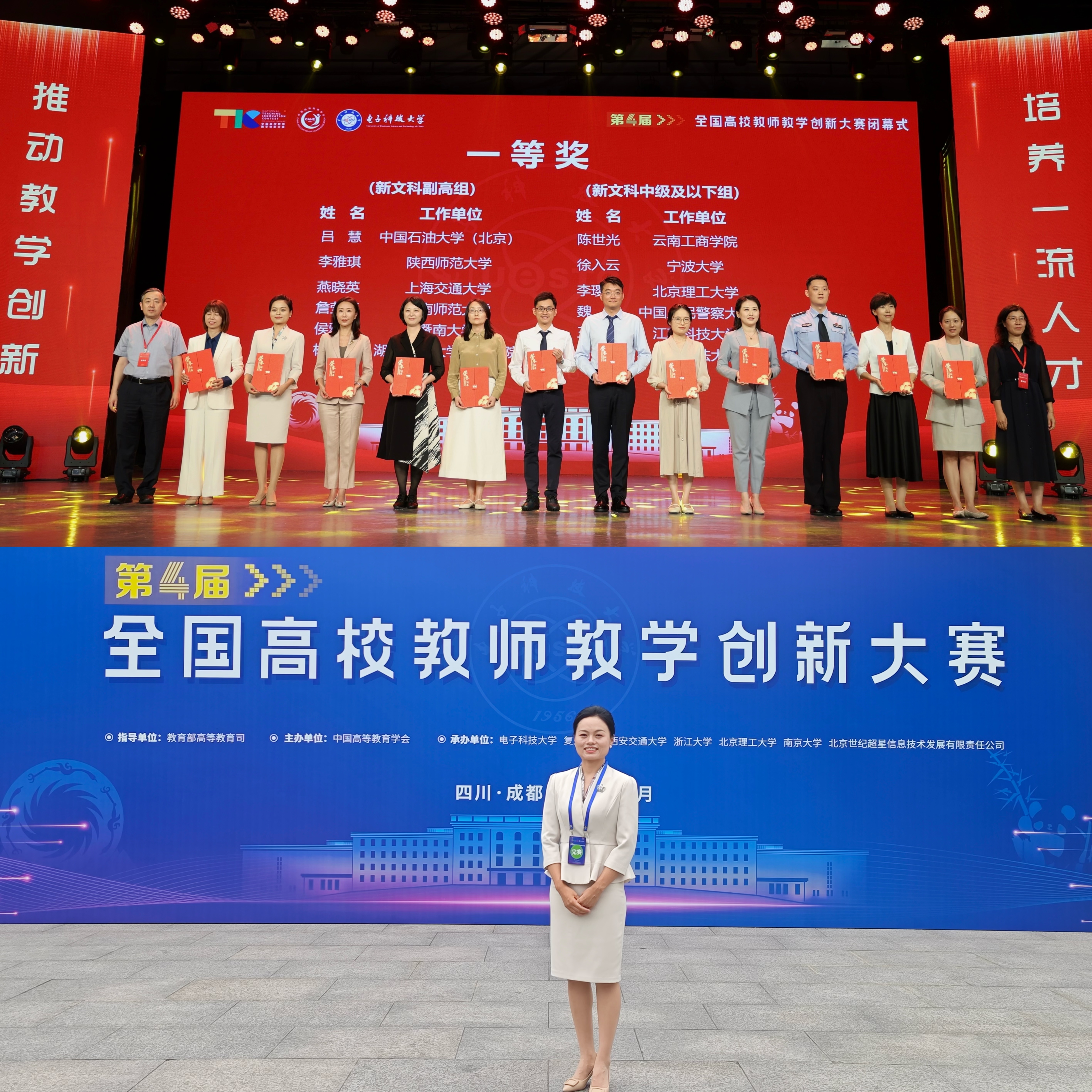 近日,第四届全国高校教师教学创新大赛、第七届全国高校青年教师教学竞赛决赛相继在电子科技大学、上海交通大学成功举办。我校文学院副教授李雅琪荣获全国高校教师教学创新大赛新文科赛道副高组一等奖,马克思主义学院青年教师孔晓菲荣获全国高校青年教师教学竞赛思想政治理论课专项组二等奖。